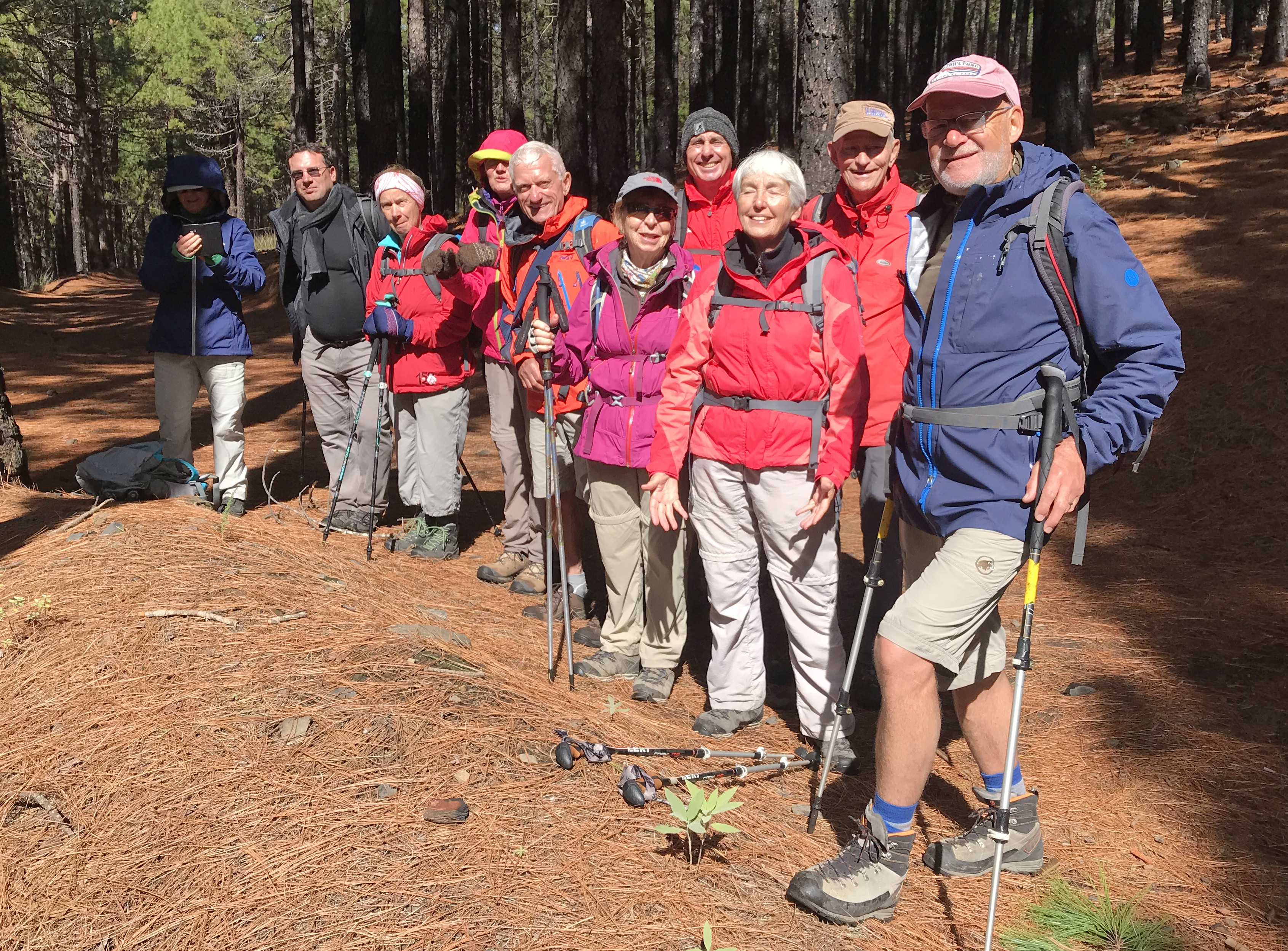 16 Jeudistes, sous la conduite de Werner Burri (GO pour la septième année consécutive sur l'archipel des Canaries), ont séjourné à La Palma pendant une semaine. Leur "camp de base" était situé dans une résidence à Puerto Naos, station où ils ont leurs habitudes sur cette île. Pourquoi donc La Palma, une fois encore ? Parce que L'Isla Bonita (l'île jolie)offre une grande diversité de paysages enchanteurs, tropicaux et volcaniques, sillonnés d'une multitude de sentiers de randonnée qui font le bonheur de tous. De surcroît, l'île a été distinguée par l'Unesco qui l'a classée comme réserve de biosphère à son patrimoine mondial. Le ciel clair et les températures clémentes en automne offrent les meilleures conditions de séjour et même le sable noirâtre des plages ne rebute pas les baigneuses et les baigneurs d'après course lesquels préfèrent l'océan à la piscine de leur résidence.